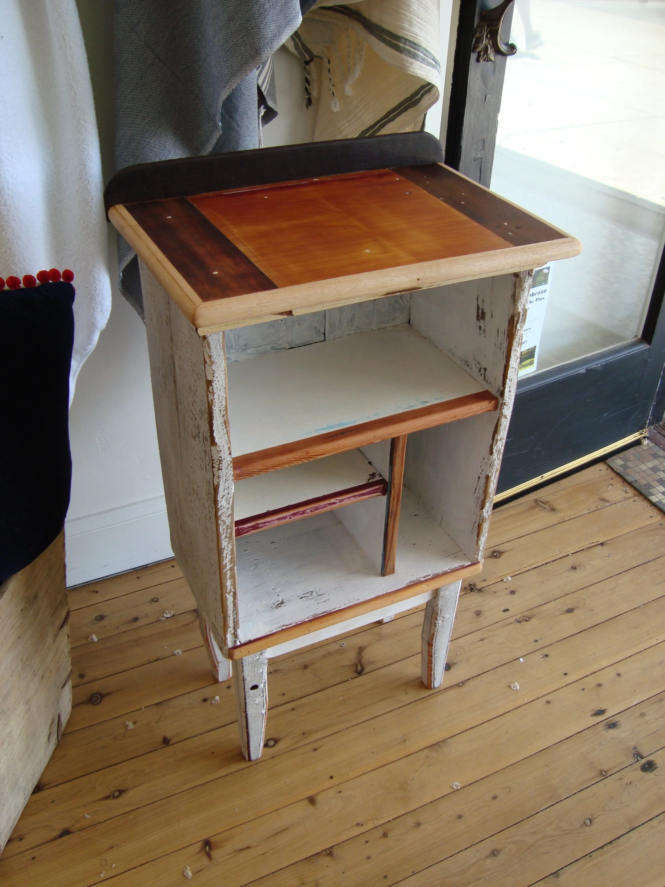 Typically one-door one-drawer, and made from salvaged drawers, lining boards, knobs, toggles and hinges. Treasured old things made into something useful. We can’t make these to order, please see shop for cupboards currently for sale.